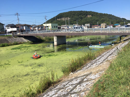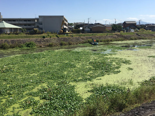 今年の夏、その水面には一面ホテイアオイをはじめとする水草が繁茂してしまいました。
