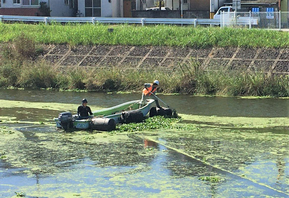 一面このような水草に覆われてしまうと、水中に光が届かなくなり、水生生物が生きられなくなり生態系が破壊されてしまいます。冬になると枯れた水草が腐敗し、漂う悪臭は近隣の住民を困らせます。