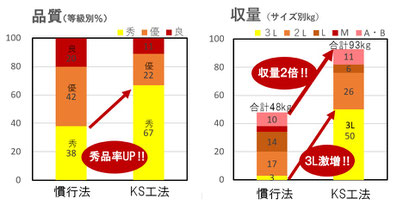 良質堆肥の製造委託業務にて行いました。 秀品率が上がり品質は向上、サイズも大きいものが増え、合計収量も2倍近くになりました。