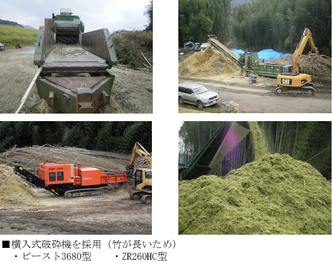 竹のように長いものは、横入れ式の破砕機で破砕します。