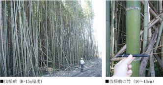 伐採前の竹は、高さ10m以上、太さ(直径)10~15㎝、広さ約10,000m2もありました。