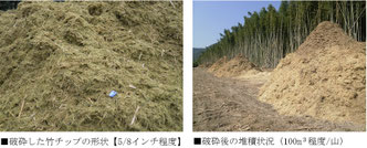 約5/8インチ程度に破砕された竹チップです。